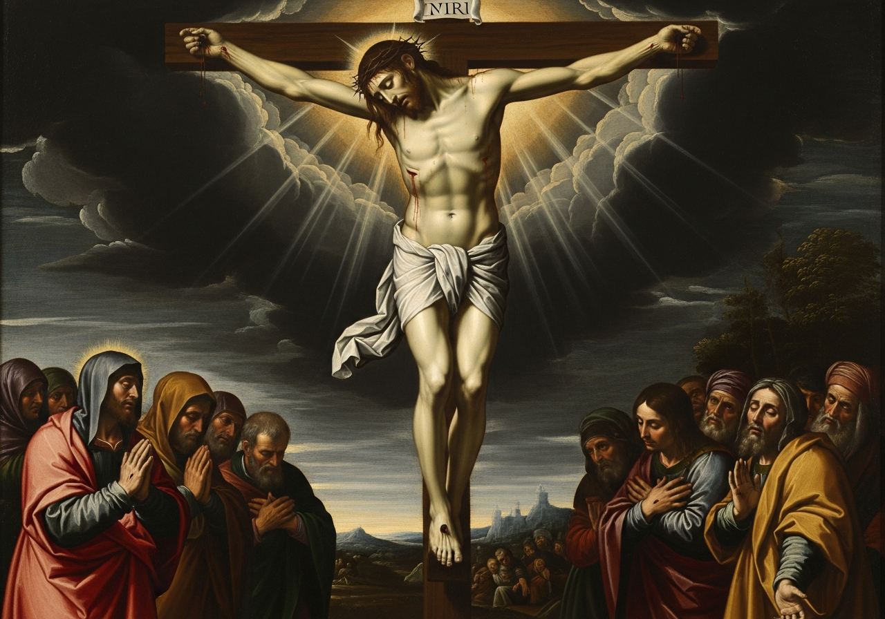 Betrachtung: Jesus erfährt die Tiefe der menschlichen Gottverlassenheit. In seiner hypostatischen Union – als echte Menschenperson, vereint mit der Gottheit – trägt er das existenzielle Gewicht der Separation von Gott, die die Sünde verursacht. "Es ist vollbracht" – mit diesen Worten öffnet er die Tore des Himmels.