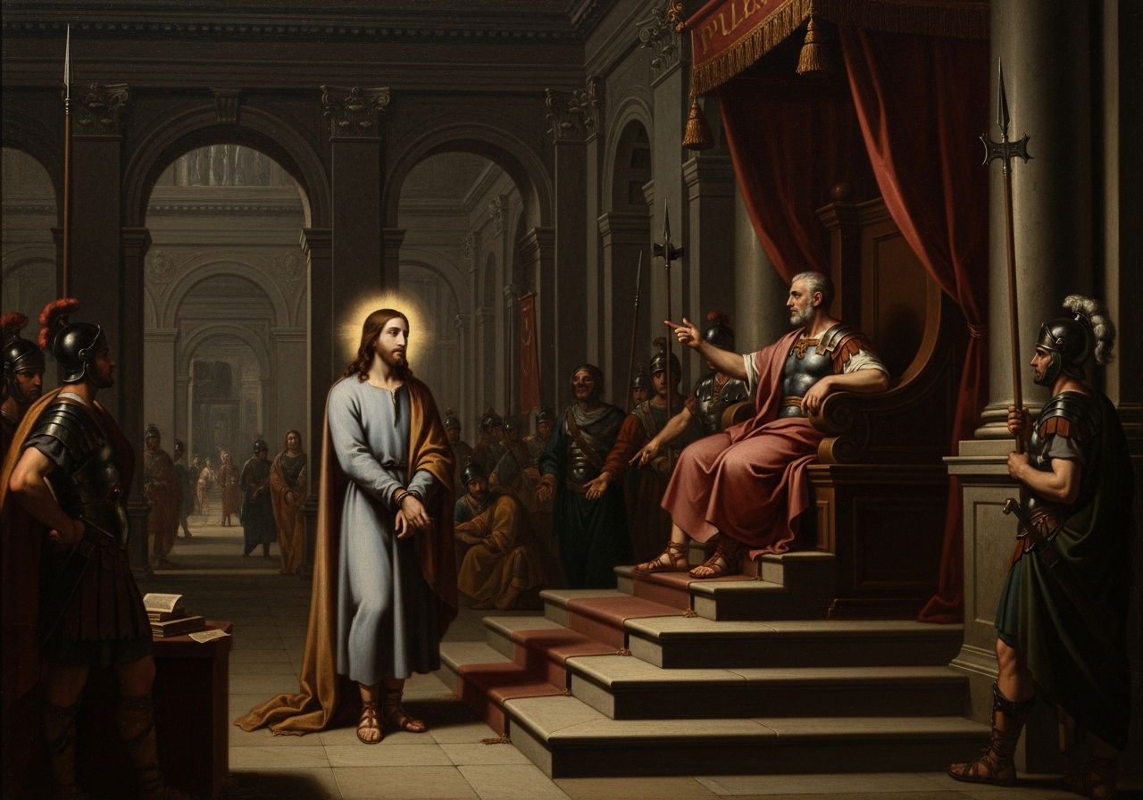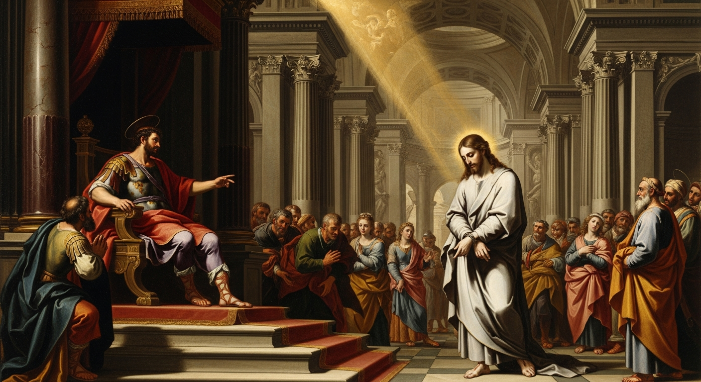 Betrachtung: Pilatus opfert Gerechtigkeit der Popularität. Jesus nimmt dieses Urteil an – nicht aus Schwäche, sondern aus Liebe. Er trägt unsere Schuld, die wir verdient hätten. Diese Station stellt uns vor die Frage: Wie oft verleugnen wir unseren Glauben aus Angst?