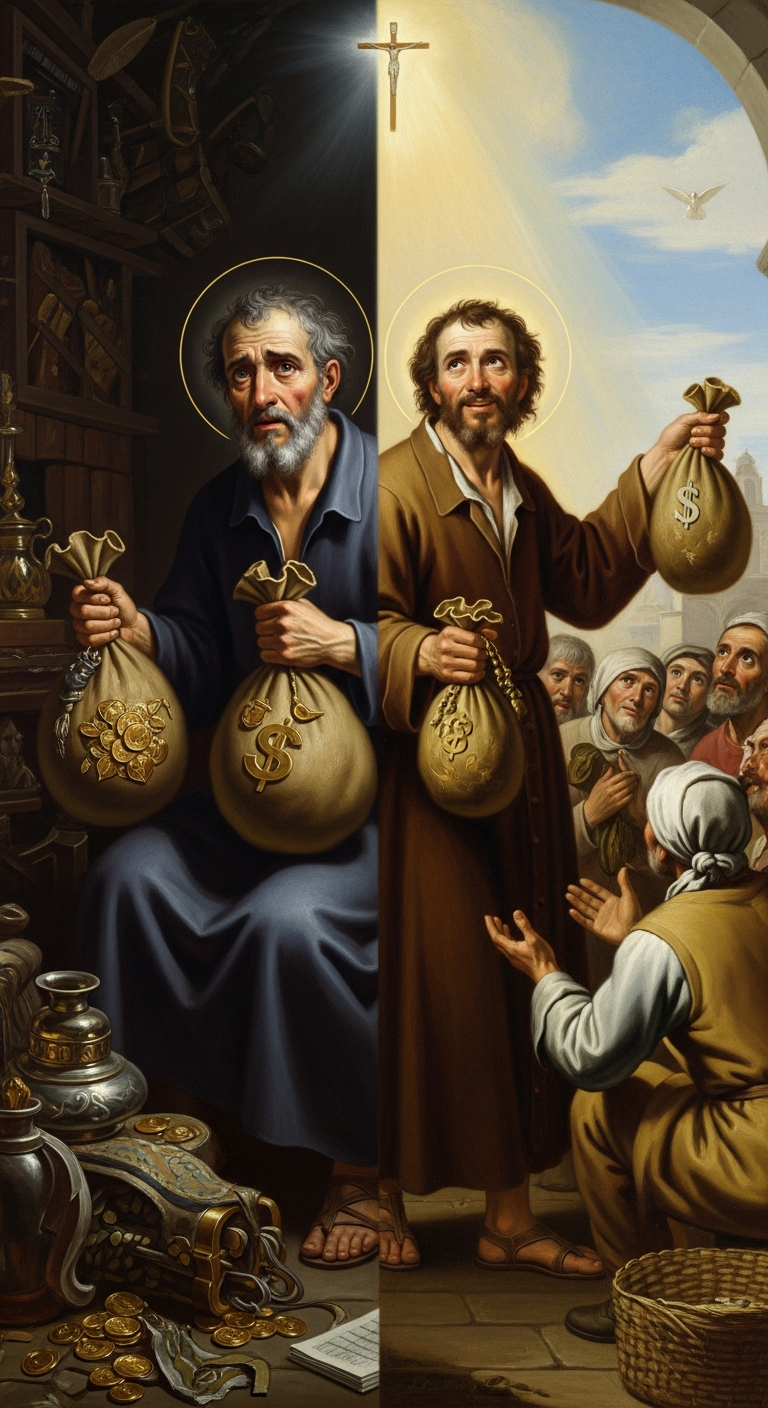 Kein Geiziger ist so gebunden, daß er nicht befreit werden könnte. Gottes Gnade kann sogar das harteste Herz weichmachen. Durch Beichte, Buße und Gnade kann der ärgste Miser in einen großmütigen Menschen verwandelt werden.