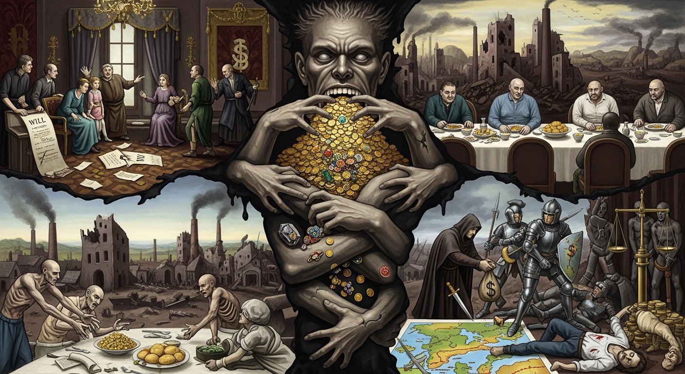 Eine umfassende Untersuchung der Todsünde des Geizes, der obsessiven Liebe zu Reichtum und Besitz, ihrer vielfältigen Manifestationen, ihrer zerstörerischen Folgen für Seele und Gesellschaft und des Weges zur Heilung durch Großmut und geistliche Freiheit.