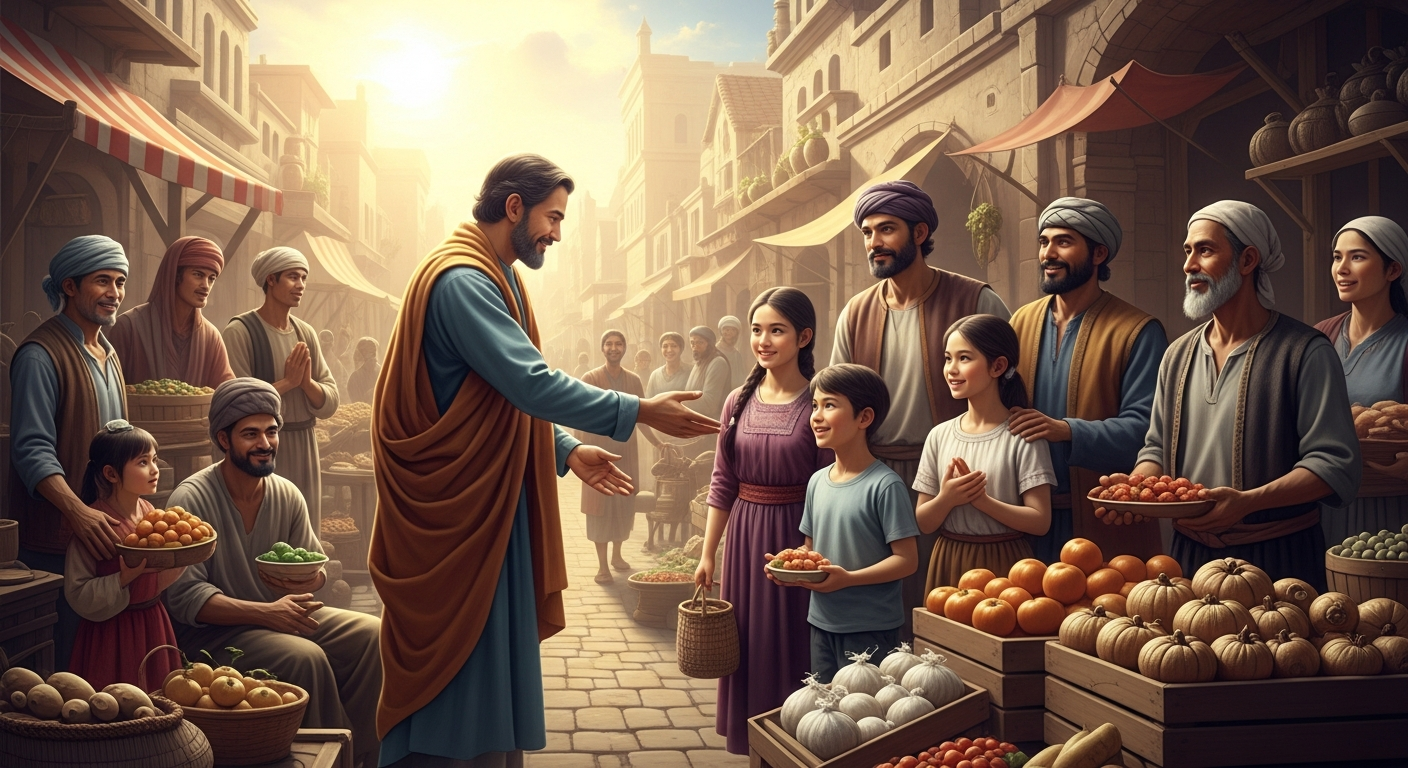 Der gerechte Mensch zahlt Arbeitern gerechte Löhne. Er betrügt nicht. Er nutzt sein Vermögen, um anderen Gerechtigkeit zu versorgen, nicht Ausbeutung.