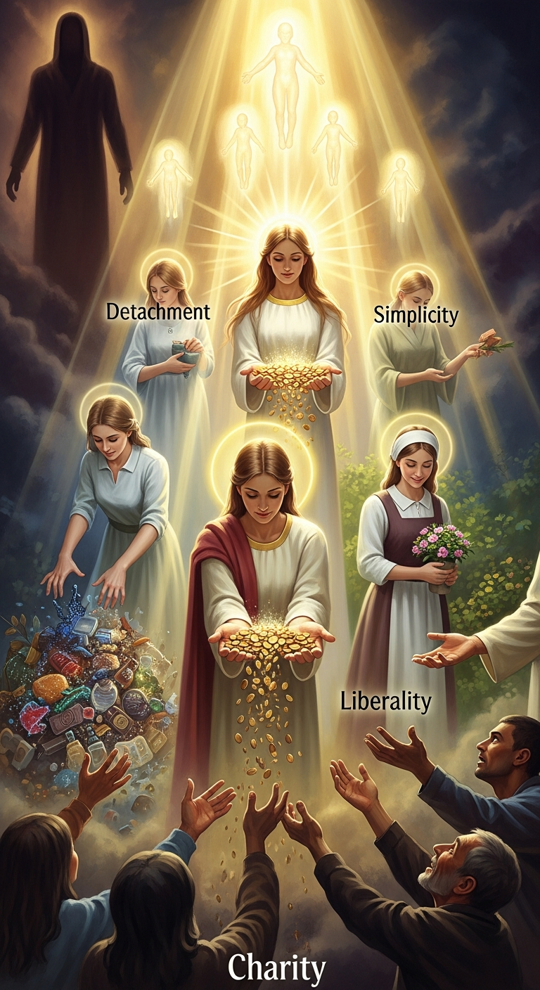 Liebe zur Armut bedeutet nicht, verarmt zu sein, sondern nicht an Reichtum haften zu bleiben. Es bedeutet, daß man alles aufgeben kann, wenn Gott es verlangt.